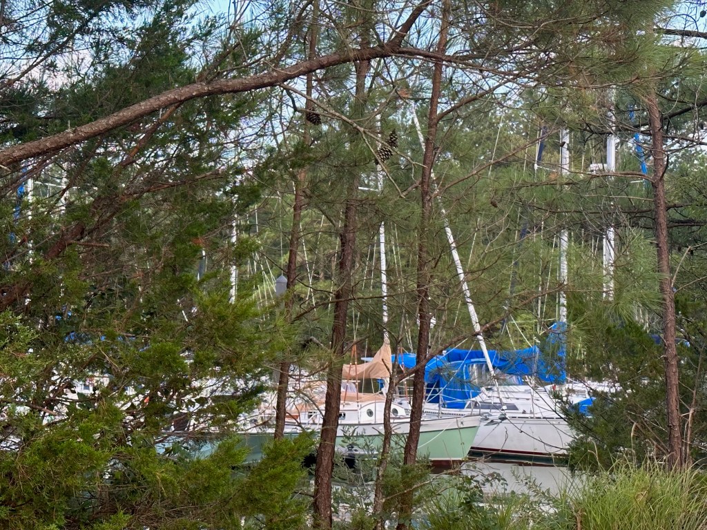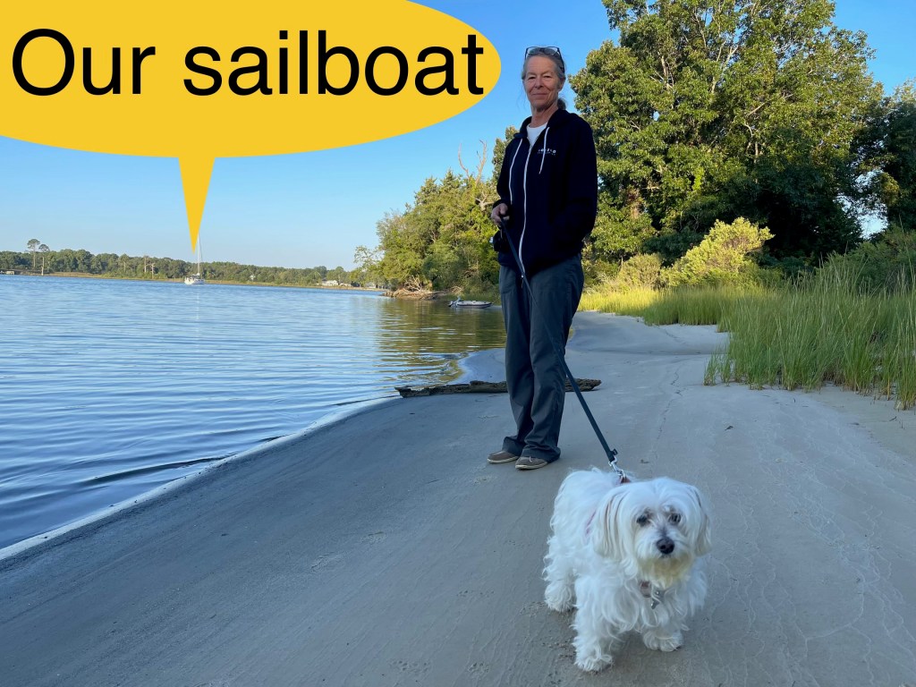 Things calmed down once we got in the creek and a little protected from the wind. We got a good set on the anchor and a night’s rest. Mitzi took us to a little beach in the morning. Her spirit was good even though her tummy was still bothering her a little. It was pretty here and we are comfortable, so we decided to wait a day for the wind to settle. Then we moved up to the north end of the neck, right before the Potomac, and tied up in a slip at a marina to wait out something tropical moving through.