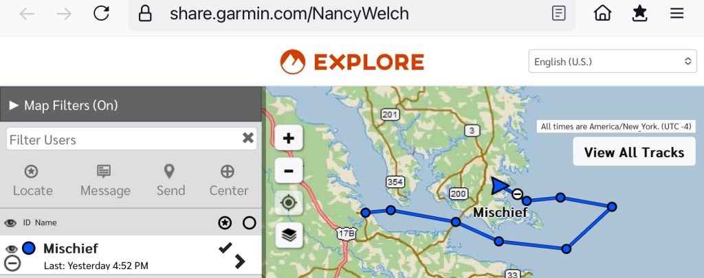 The reason why there are not more photos of the Annapolis boat show and afterwards is that on the way to Urbanna Neptune decided he needed John’s iPhone that hadn’t been backed up to the cloud. So his phone and photos went to the bottom of the Rappahannock River.