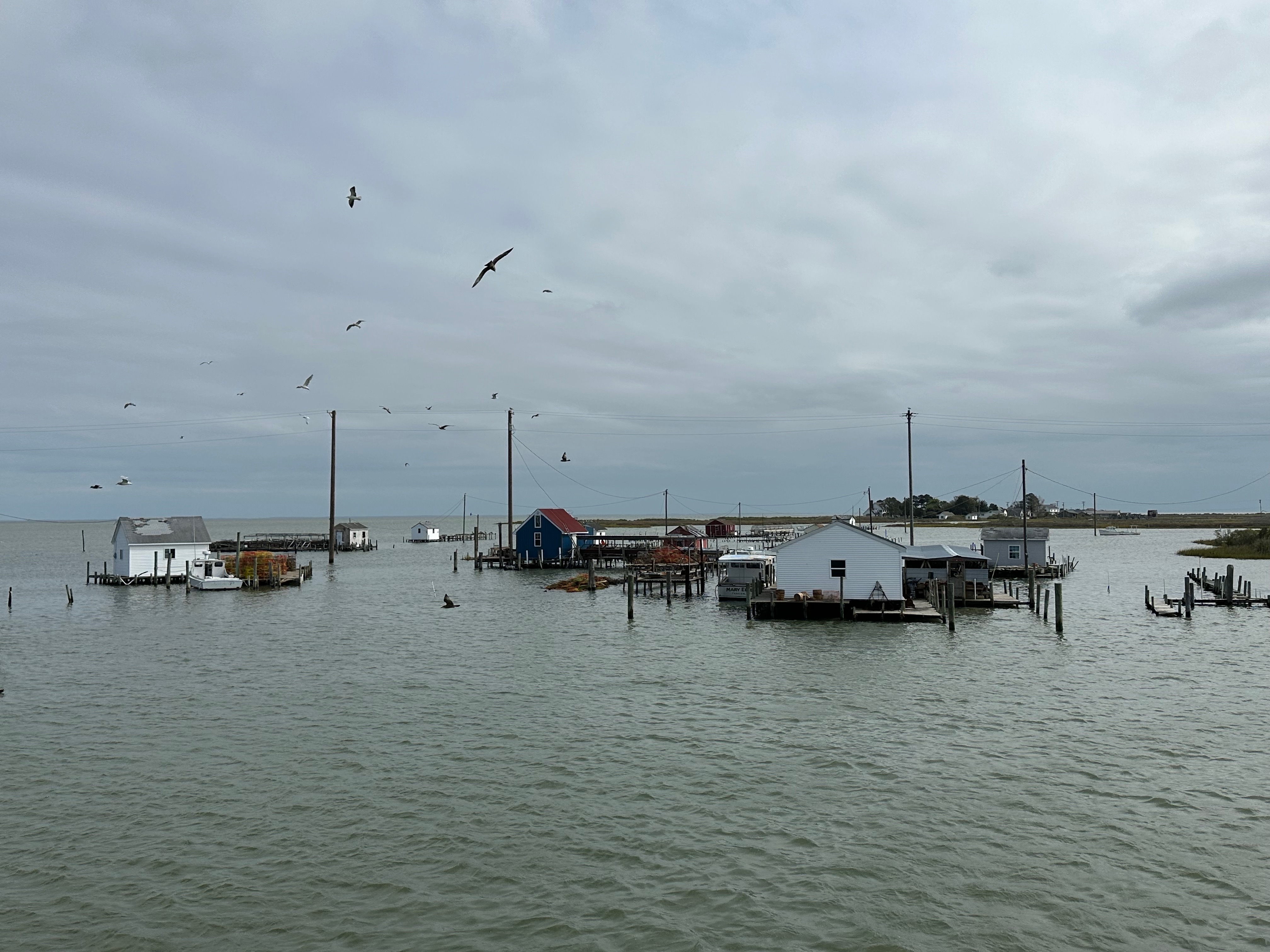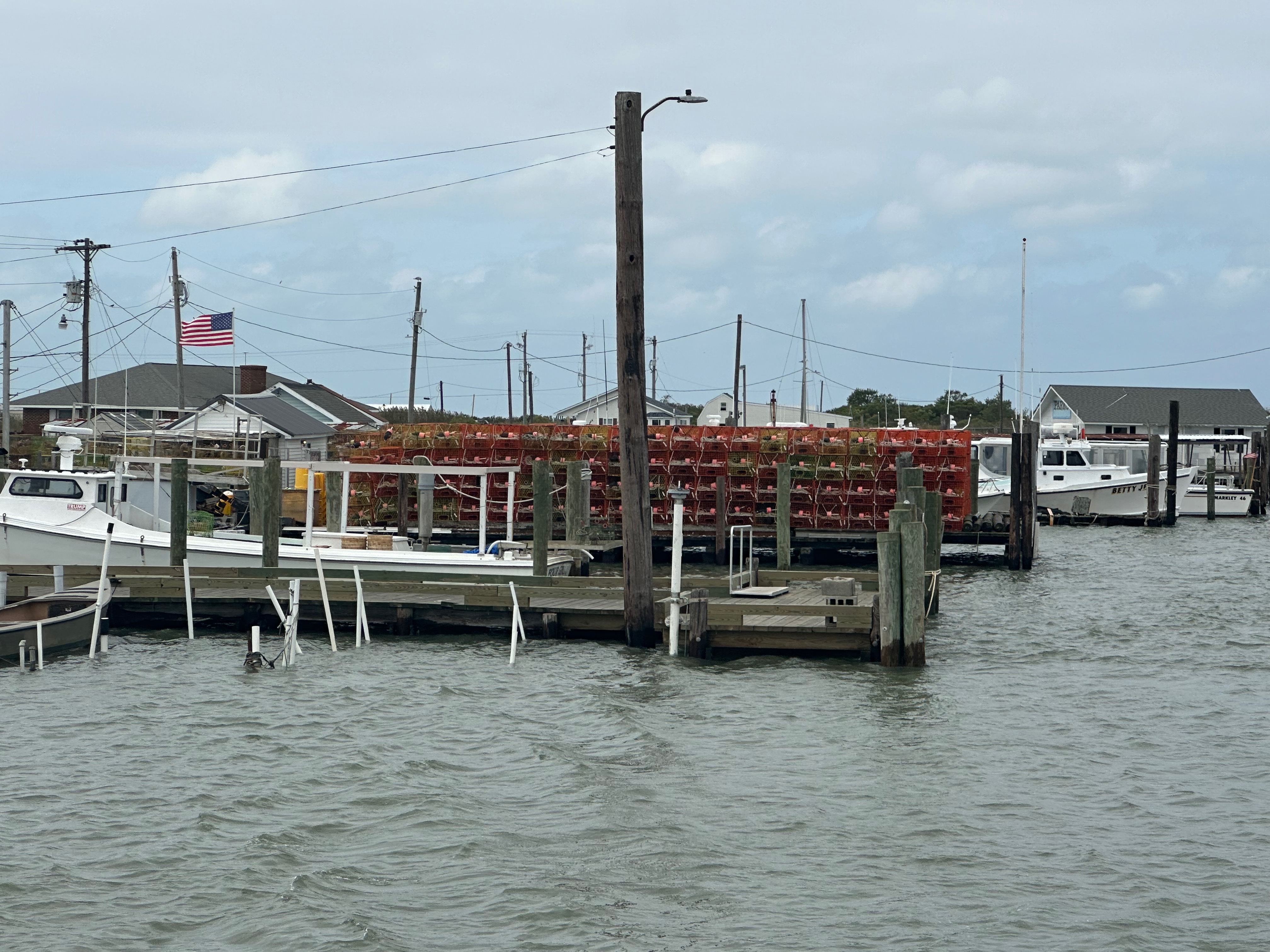 There is also a ferry that goes to Tangier Island from Reedville so we dinghied over to that dock to catch a ride. Tangier Island is a sinking island where a few families have lived and worked for generations. The people there have a unique way of talking that is derived from 17th to 18th century British English. It sounds more British than American and has some very unique phrases and words, fascinating to listen to. Around the island are many fish huts where piles of crab traps are stacked up eluding to the importance of fishing to the community. The town’s one marina was once run by Mr. Parks but since he passed away a couple of years ago it is barely maintained. We stopped at a restaurant for lunch and had the most delicious soft shell crab. It was great if you can get over the sight of the legs poking out of the side of the bun.