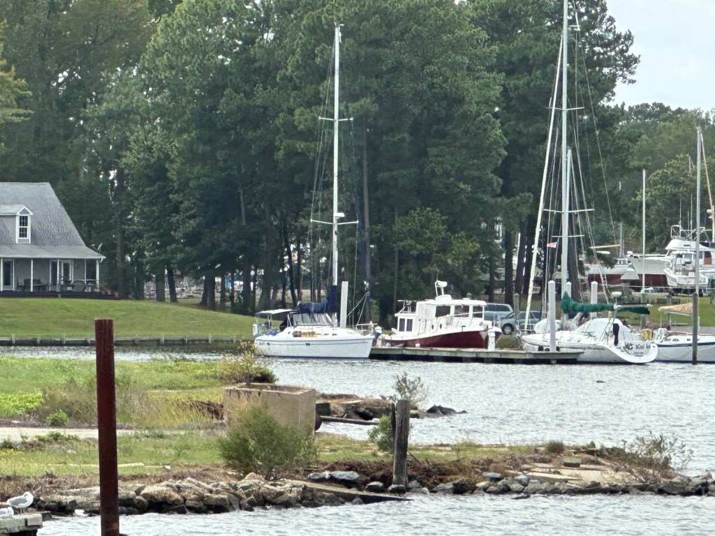 Once again we are reminded how small this world really is. We ran into a former dock mate’s boat from Waterford Harbor Marina back in Kemah. They left before we did and now hide from hurricanes in the Solomons. Unfortunately we did not see them. They were arriving the day after we left. But on our way back south 2 weeks later we saw them sail by going south too.