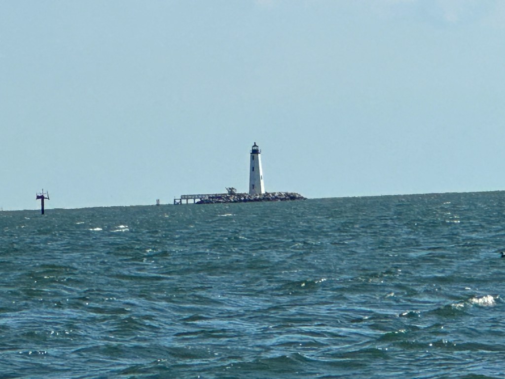 Yesterday morning we said goodbye to Urbanna. The rain moved out a little before sunrise. We made a last run to IGA, said our goodbyes, and cast off. Once clear of the channel and out on the Rappahannock we put up the main sail with one reef and let out about two thirds of the jib. Wind was 15 to 16 knots downwind and it was an easy ride for a while.