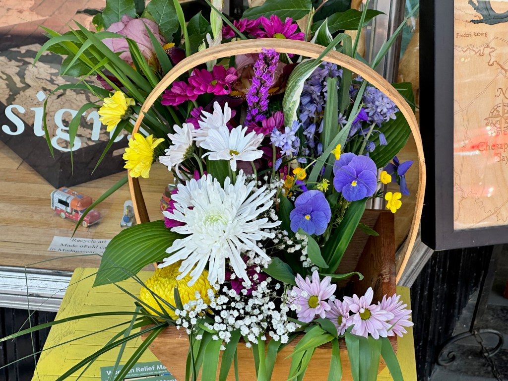 This is John. I took a long walk across Annapolis early this morning. All the downtown shops and businesses are putting out flowers to celebrate May Day. The bouquets are beautiful and many have a wonderful fragrance.